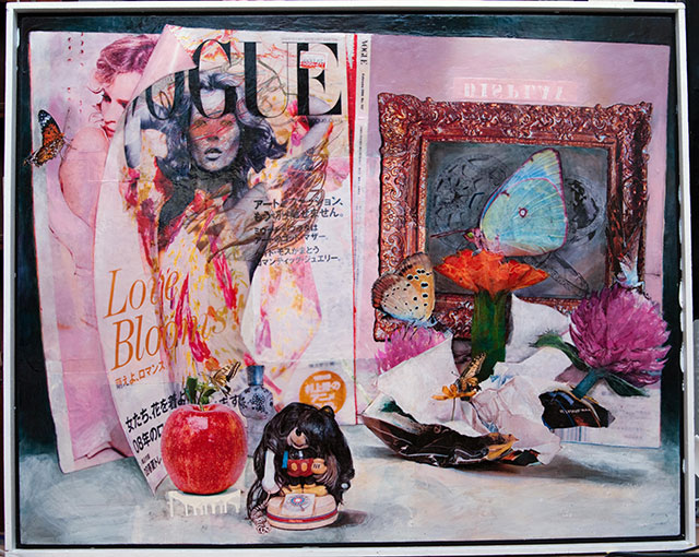 撮影とpc処理と絵画技法といった流れで作られている過程が、それぞれが入力、スーパーフラット、出力に対応しており分立した3構造になっている。内容の方は一旦取り込むデータ化により数多的可能のイメージ世界に働きかけるのと同時に、1回性のペインティングが相互に入り混じり多現実の生となった絵となるのだが、これはもともとは印刷物で出来ているため、紙面上の事柄からすべてがはじまる前論理となり、メタ・フィクションとなる。そして実際に目に写るもの、一見した絵の印象からうかがえるものは、感じるものは私小説的なモチーフとした表現形式。これらを合わせると、総じて、個人の心境図が常に低度メタ化している異種リアリズム間で闘争しているものの姿となる。確定筆記とのあいだで決して折り合ったりしない、異なる作用をする偶然の生となる側のほうが、人のほうがむしろ逆に擬似的な機械のように義体となり自動的になりたいと望む一種のアンドロイド・バグだ。